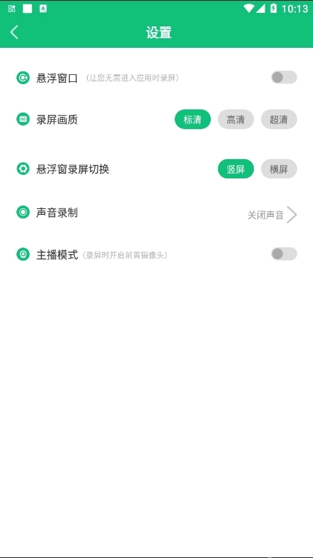 2、录屏的各项参数,像视频清晰度、屏幕录制方向、声音录制等,都是可以进行设定的。