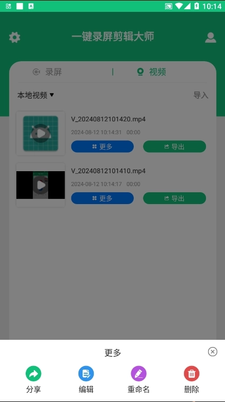 4、录制完成后,在视频栏里能找到刚录制好的视频文件,点击更多选项就能进行视频分享或编辑操作。
