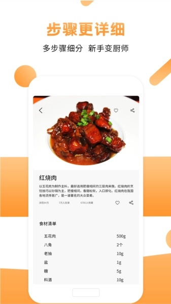 4、烹饪大师用户可清晰知晓菜谱的食材清单及需准备的食材。