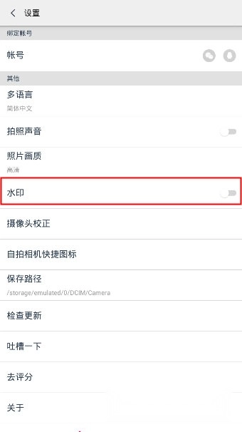 2、进入“设置”界面后,找到“水印”选项并将其开关关闭就可以了。