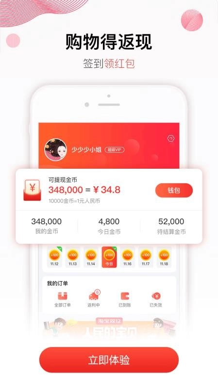 购物可以得到返现红包,让用户更加便宜的进行购物;