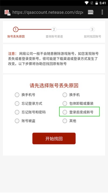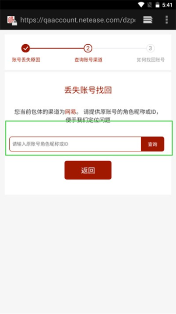 2、在游戏的登陆账号界面上,点击找回账号的按钮。