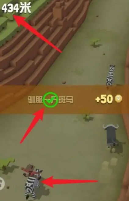 2、接着骑着斑马避开障碍物,让上方的距离超过430米,就可以驯服一只斑马。