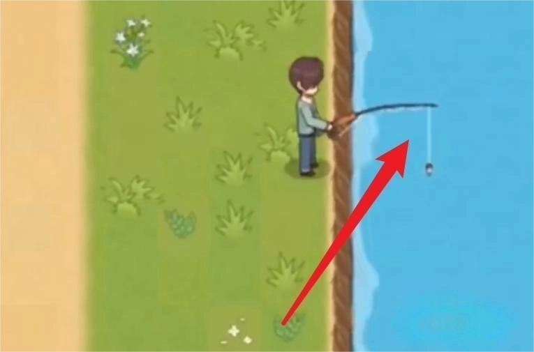 完成对话后,前往河边钓鱼。