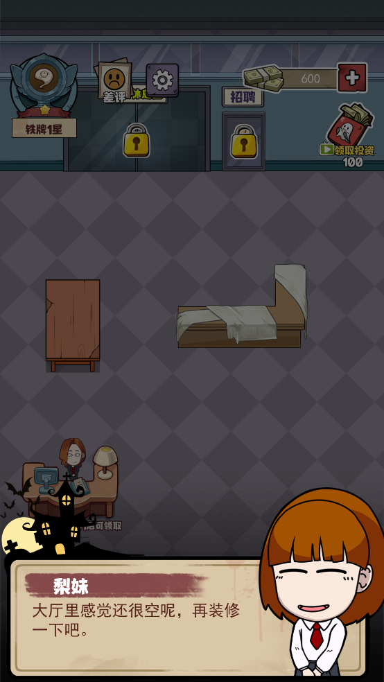 开个密室馆免广告2.1.7版本游戏中玩家将成为一家密室馆的老板,需要对密室的布局进行规划,增加密室的玩法和难度,创作不同的密室剧本吸引更多的顾客,招募员工扩建密室,通过多种手段的经营方式将密室馆不断扩大,吸引来更多的顾客,创造更多的收益。