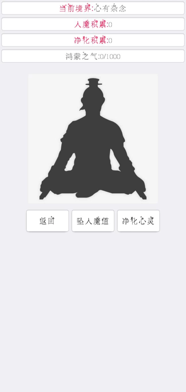 1、通过获取装备,研习功法,培育灵根以强化自身,逐步提升游戏等级。