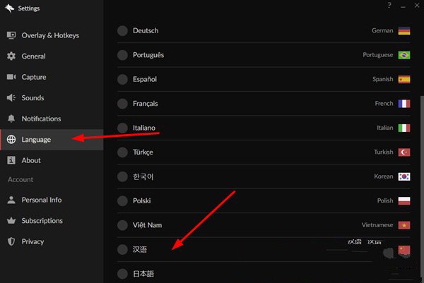 在弹出来的设置页面,点击【Language】,在里面选择【汉语】即可。