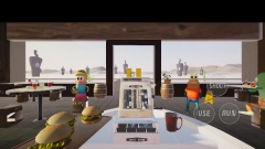 2、开启游戏,章鱼哥来到汉堡店上班,此时能看到三个操作按钮。当把目标点对准某样物品后,点击“use”就能将其拿起,点击“run”则可以加速奔跑。