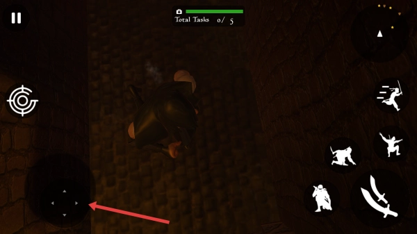 2、关卡中,用左侧摇杆方向键控制忍者移动,在昏暗巷道小心潜行,避开敌人。