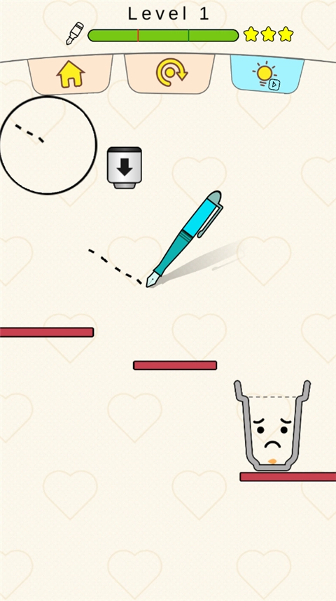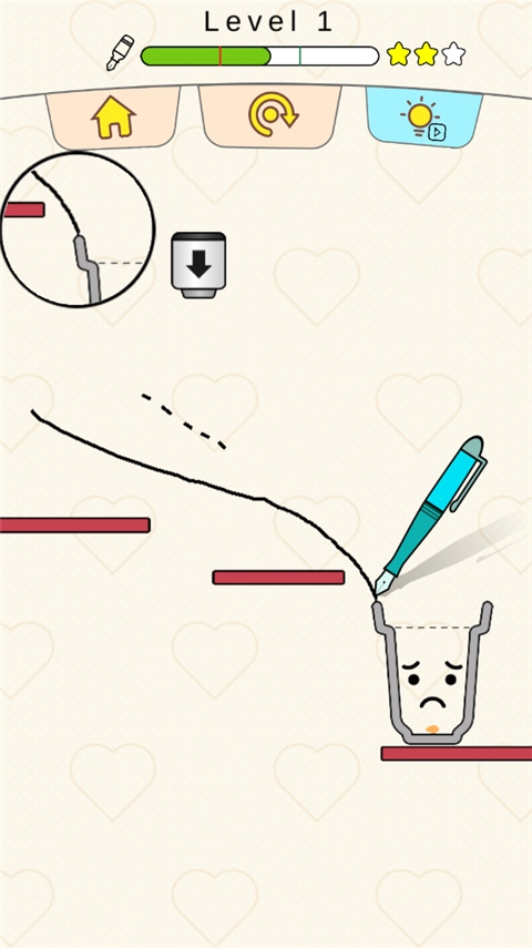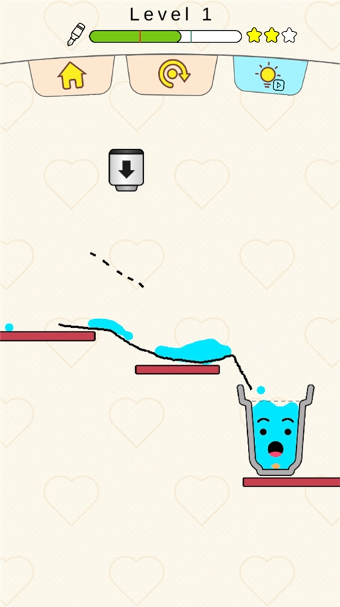 1、在游戏里,玩家主要通过画线的方式,使水流进杯子中。