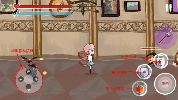 青鸟镇是一款有着清新画面风格制作出的角色扮演类游戏,在游戏中采用了2D的场景制作模式,横版的操作方式进行冒险闯关,各种不同的背景主题画面打造,使用特色的魔法攻击,展开一段神奇的冒险故事,为了成功的拯救自己的小镇,独自踏上的寻找真相的路程,带领着属于自己的青鸟,有着强大的魔法攻击效果。那么关于这款游戏该怎么玩呢?下面就由小编简单的介绍一下吧。结合图文首先了解一下基本操作。