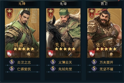 2、使用刘备、张飞、关羽的桃园组合组队,切记不使用等级互换,否则亏体力。