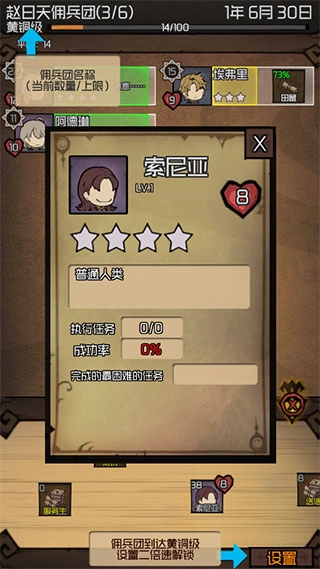 2、游戏中所有的事件,任务,人物都是随机的,你将从最开始的几人的小佣兵团队一步一步成长起来