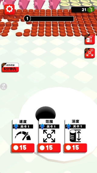 3、前往固定区域将吞噬的事物转化为金币,金币作为重要的资源,关系到黑洞的成长速度,玩家要努力收集更多金币。