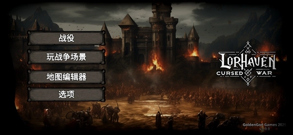1. 进入游戏后,游戏界面具备战役、玩战争场景、地图编辑器、选项等诸多功能。