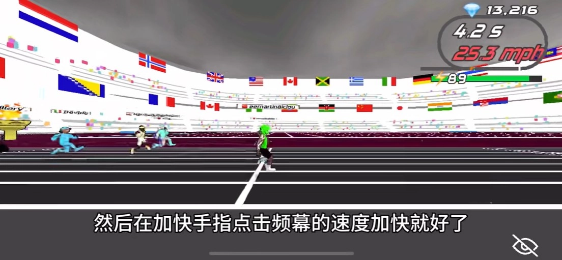 5、点击屏幕的速度越快,运动员奔跑的速度也就越快,