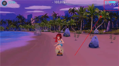 3、游戏开始会是一个男孩背着女孩通过滑板进行跑酷,遇到这种闪光,玩家需要左右滑动来触碰到闪光得分,触碰到越多分数也就越多。