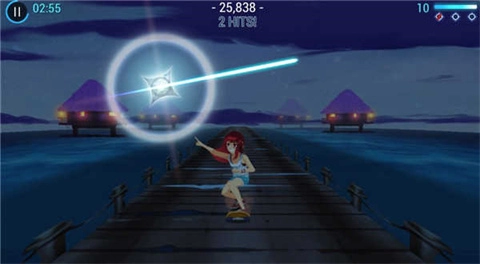 3、您只需要点击出现在屏幕上的星星圆圈,难度较大,比较考验玩家的手速和反应能力,是节奏感十分强烈的古典音乐,能够与背景自然的融合在一起,再搭配不断变化的场景,轻松的闯关。