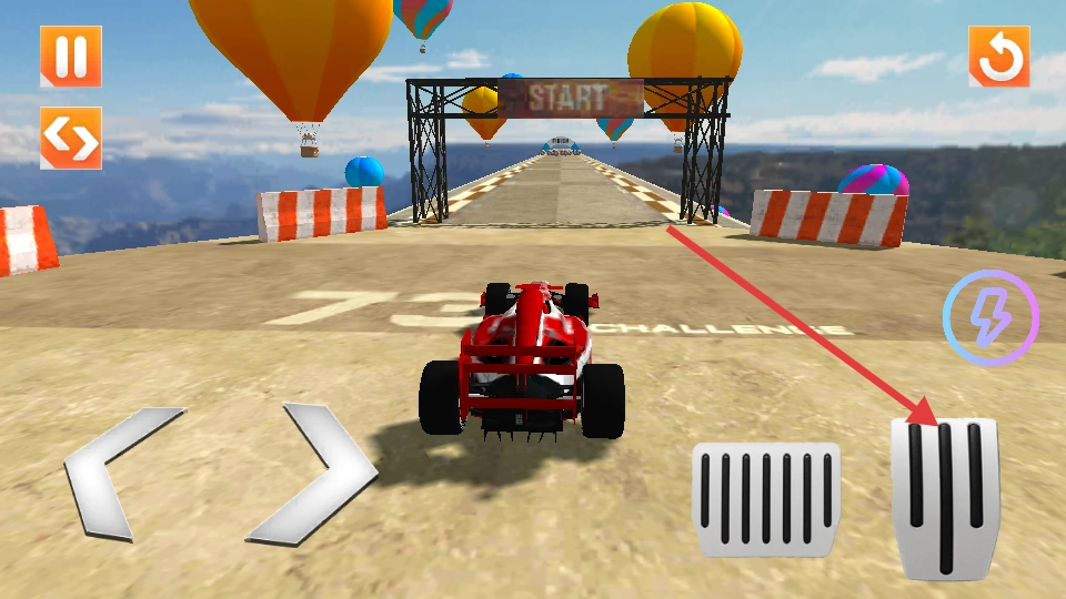1. 利用左右两侧的虚拟按键来操控方向,长按加速按键可启动氮气推进系统。