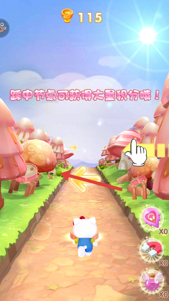 2、跑酷过程中,通过点击屏幕按钮控制凯蒂猫躲避赛道上的障碍物,比如漂浮的气球、突然出现的路障,同时收集沿途的星星、糖果等道具。