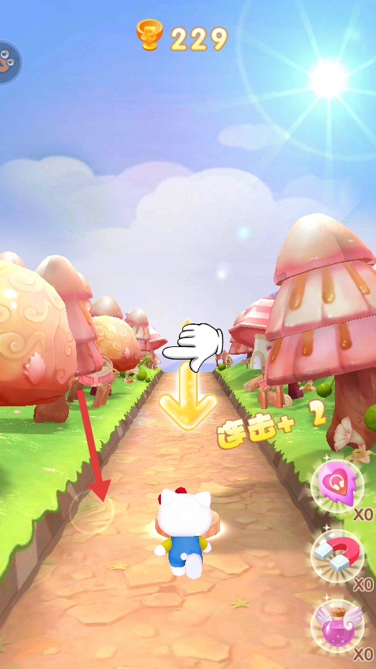 3、不断操控凯蒂猫在赛道上前行,借助收集到的道具触发特殊效果,像短暂无敌、加速冲刺等,坚持跑尽可能远的距离,或者达成指定的收集目标,就能获取奖励并解锁新内容。