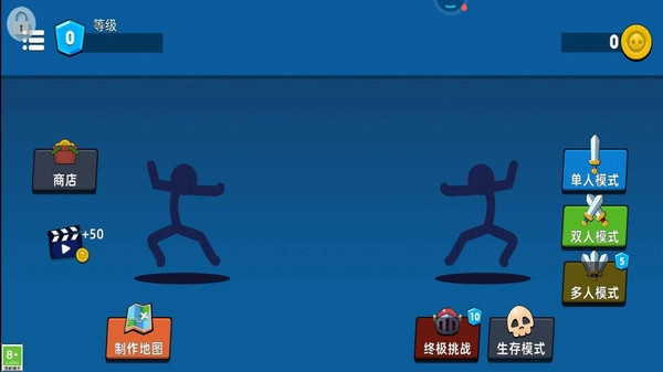 3、升级属性、解锁新技能和外观,培养出一个独一无二的火柴人。