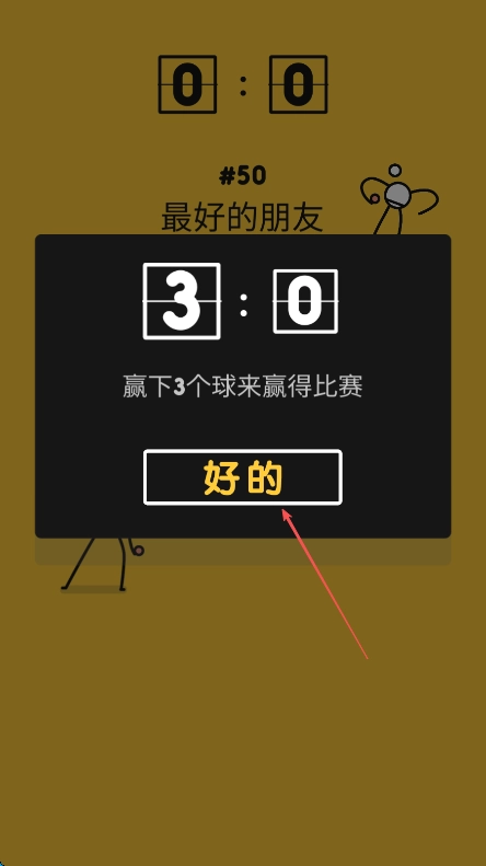 1. 开启游戏,待比分界面出现后,确认本局比赛的目标是赢取3个球从而获得胜利,点击“好的”,正式开启游戏进程。