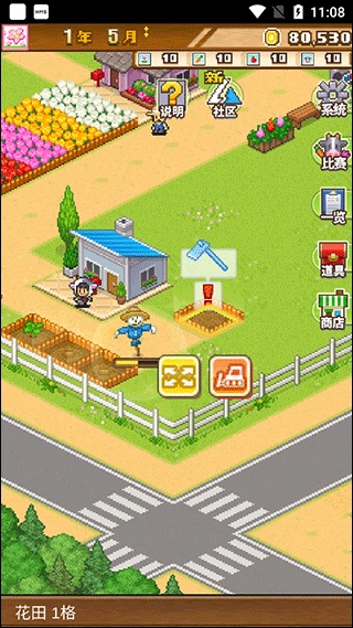 1、打开像素牧场物语手游,找到并点击处于空闲状态的农地(农地能够在商店里进行购买)