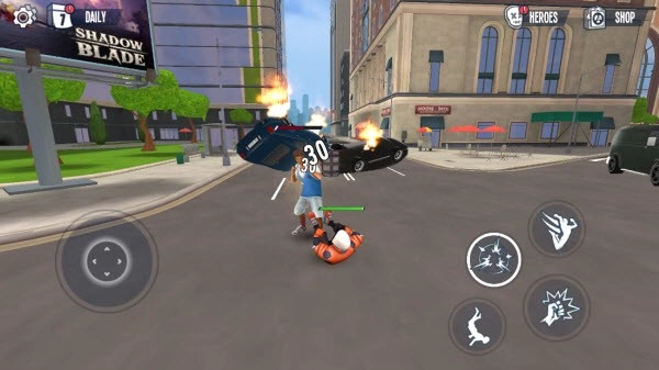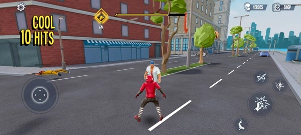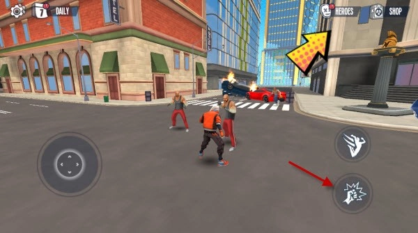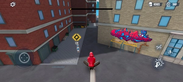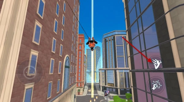 2. 长按右侧按钮,便能发射蛛丝,使角色实现大楼间的跳跃。