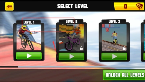 1、点击屏幕中央醒目的START按钮,伴随着动感的音效,您将正式开启这段充满速度与激情的自行车冒险之旅。