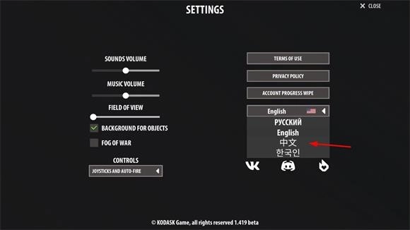 2、在设置界面点击English选择不同的语言,最后选择中文就可以将游戏设置成中文版。