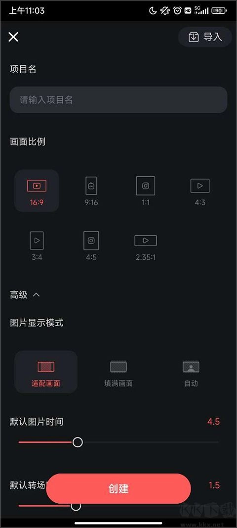 2、按照需求挑选视频画幅比例(例如16:9 或者9:16)以及显示模式。