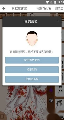 7、此外,点击人脸标识后,能够对模特形象进行个性化设定,还能利用照片打造个人专属形象。
