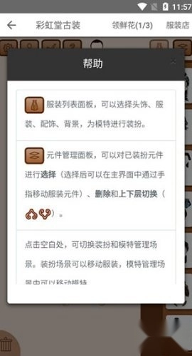 5、轻点界面最下方的服饰标识,即可进入游戏,此时系统会弹出帮助界面,方便玩家参考。