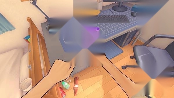 3、该游戏运用3D第一人称视角,玩家所扮演的主角于床上苏醒后,最先拿起桌上的手机。