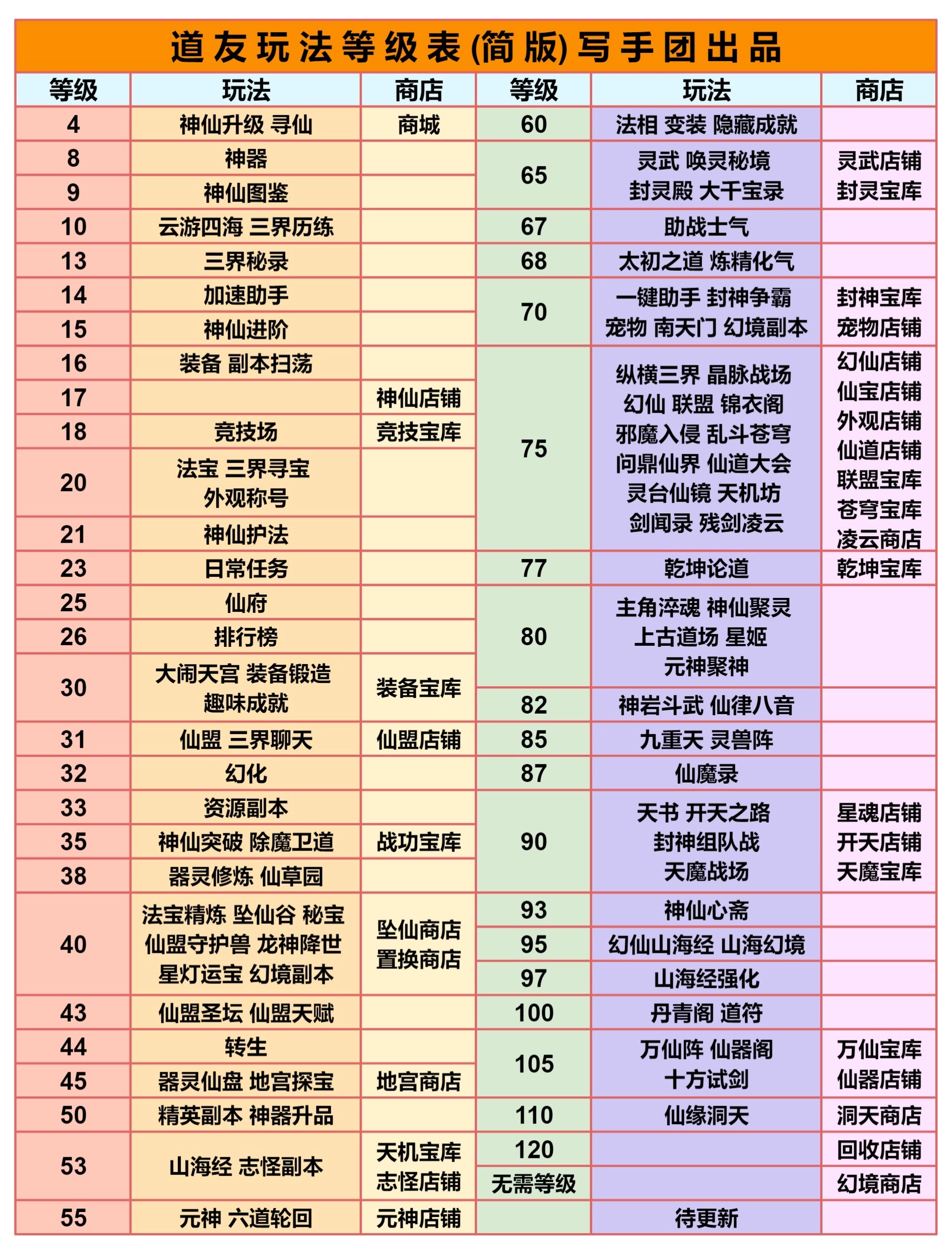 自紫金起,道友每族每个品质仅会出现3个神仙,这3个神仙出现的顺序固定,且越往后出现的神仙实力越强。