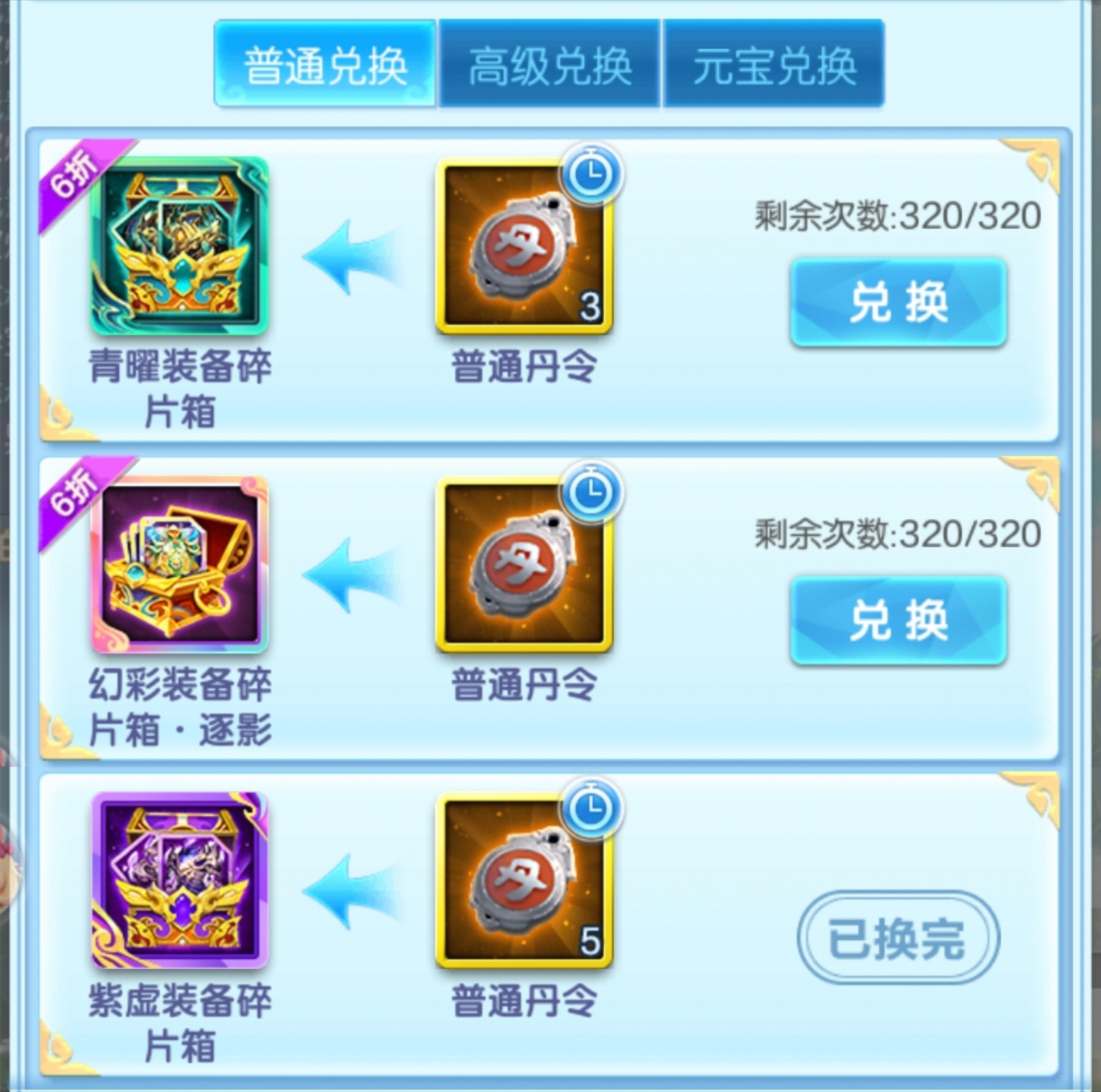 4个高级道具可兑换1个天书碎片