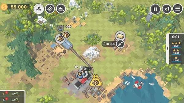 1、融合了烧脑解谜与模拟经营的双重玩法,玩家在规划铁路的同时还需统筹资源管理,体验动脑与建造的双重满足。