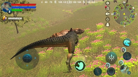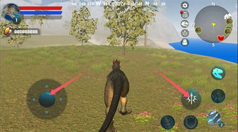 3、左边的轮盘控制恐龙移动,右边的按键控制恐龙攻击。