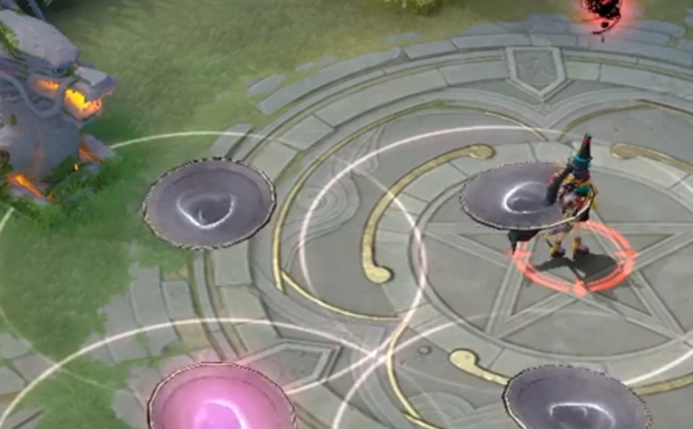 他的三技能叫听咱一言释,这个技能是一个纯伤害技能,该技能释放后会对前方范围内的敌人造成伤害,这个技能可以存储两次,可以在瞬间打出两次伤害。他的四技能叫捉迷藏,这个技能很有意思,释放这个技能时他会丢出四个酒碗,之后藏在其中一个酒碗中,藏入之后可以规避伤害,当敌人接近酒碗后他就会从酒碗中跳出,之后酒碗会爆炸对敌人造成伤害。