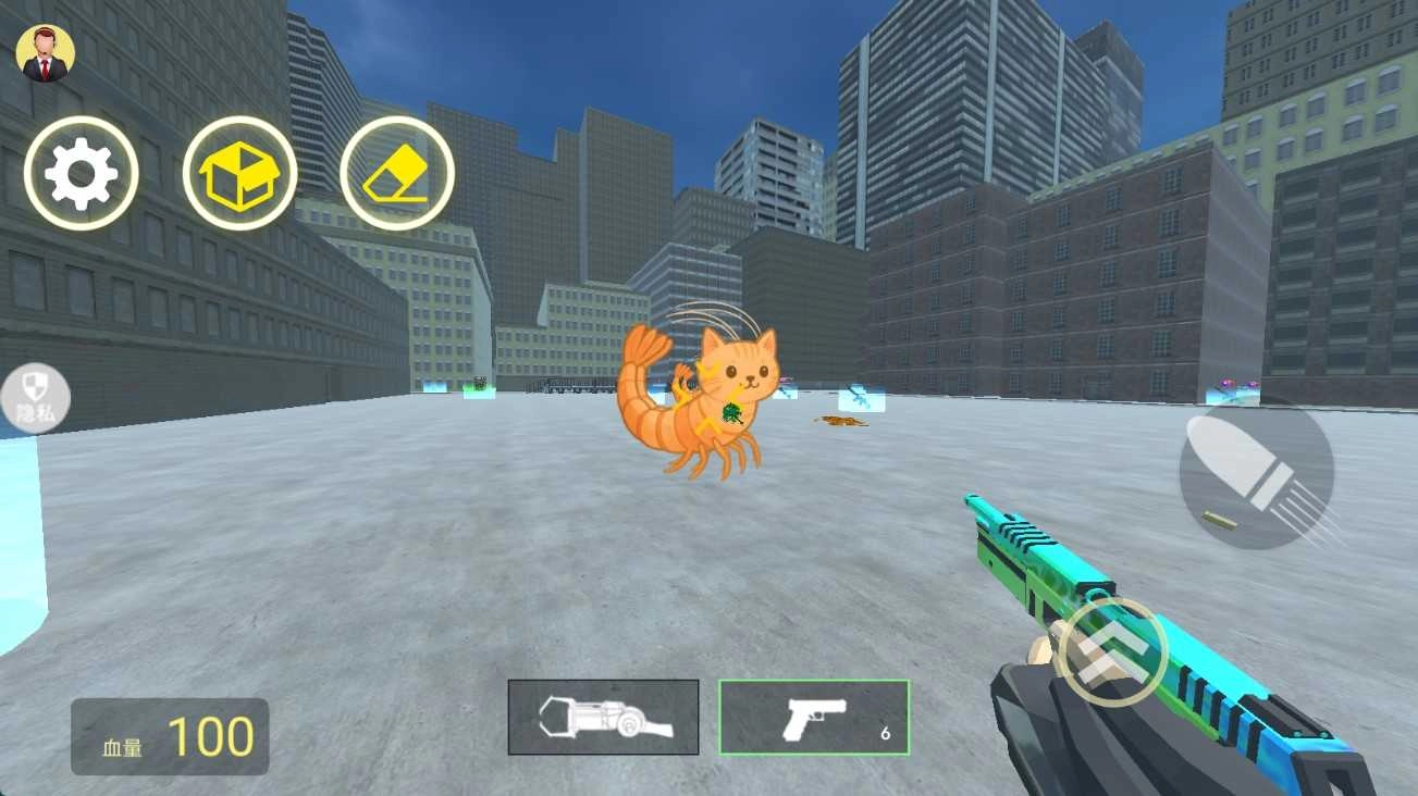 2、踏入游戏后,你会邂逅像虾猫这类奇特的生物,此时可拿起手中枪械,点击右侧的攻击按钮,朝着这些生物展开攻击。