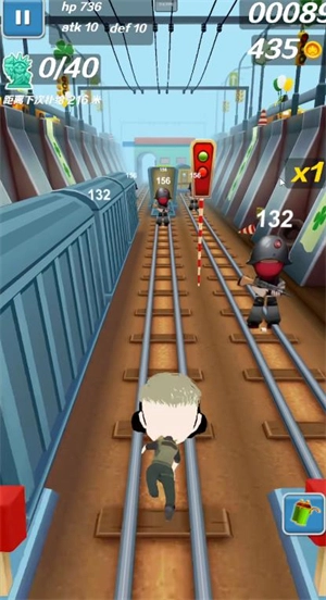 2、跑酷时,通过在屏幕上进行上下左右滑动操作,能够控制角色避开障碍物。
