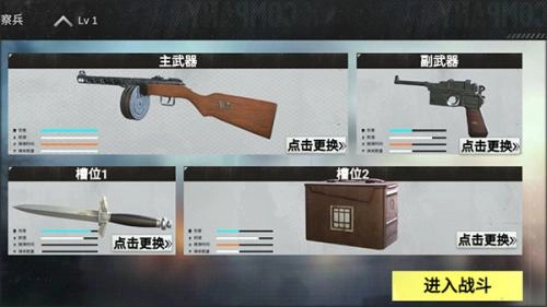 2、进入战斗前可以选择你需要的武器,点击更换即可进入武器库进行更换武器。