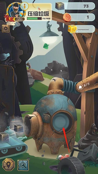3、在“垃圾大亨”模拟器中要压缩第一个垃圾多维数据集,只需单击压缩器,单击速度越快,您得到的垃圾越多。