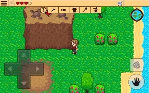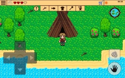 4、游戏的操作方式十分简便,设有十字型方向键,以及拾取、使用按钮。屏幕上方还展示着荒岛地图与已收集到的物品。玩家能够在恰当的时候,通过相应动作来进行建造、拾取、攻击等操作。