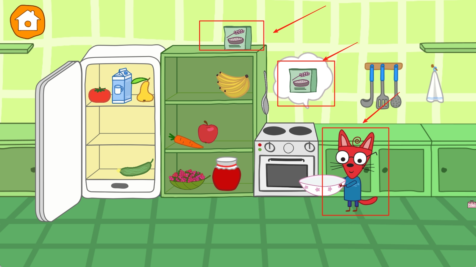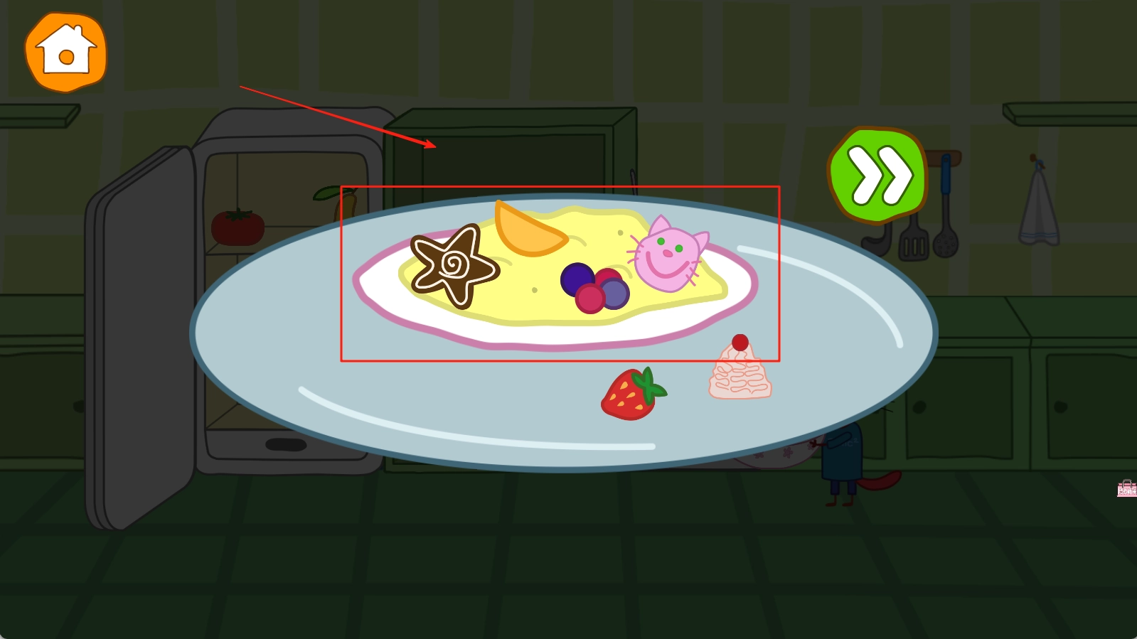 1. 依照动物伙伴的指引来处理基础食材,依照步骤有序完成烹饪操作,精确掌控时间与火候,以保障菜品品质符合标准。