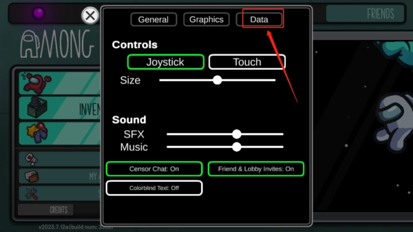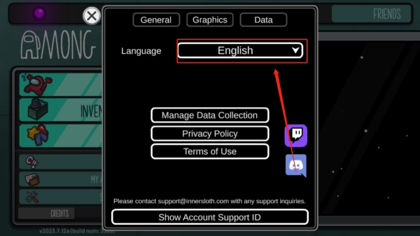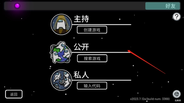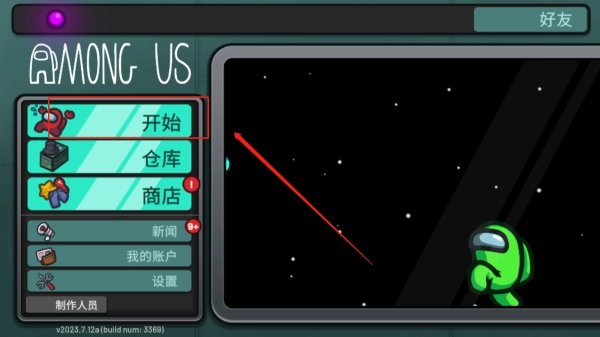 1、通过正规途径下载并安装太空狼人杀手机版,游戏启动进入主界面后,点击右上角的“settings”(设置)按钮