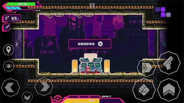 4、关卡中,警戒度越高,出现的机器人数量就越多。部分房间内设有装置,能够降低你的警戒度。