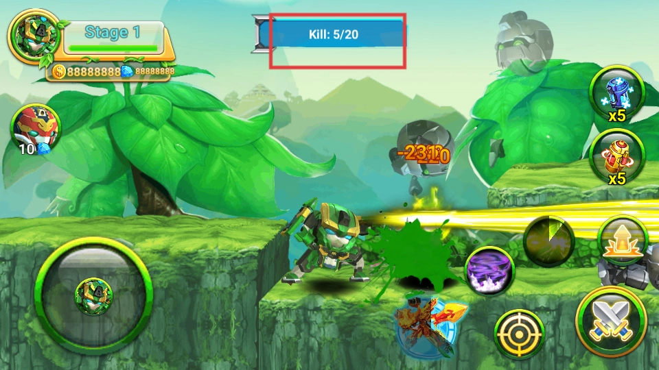 3、通过不断累计击败敌人数量,达成顶部显示的【Kill:5/20】进度要求,从而推进关卡。