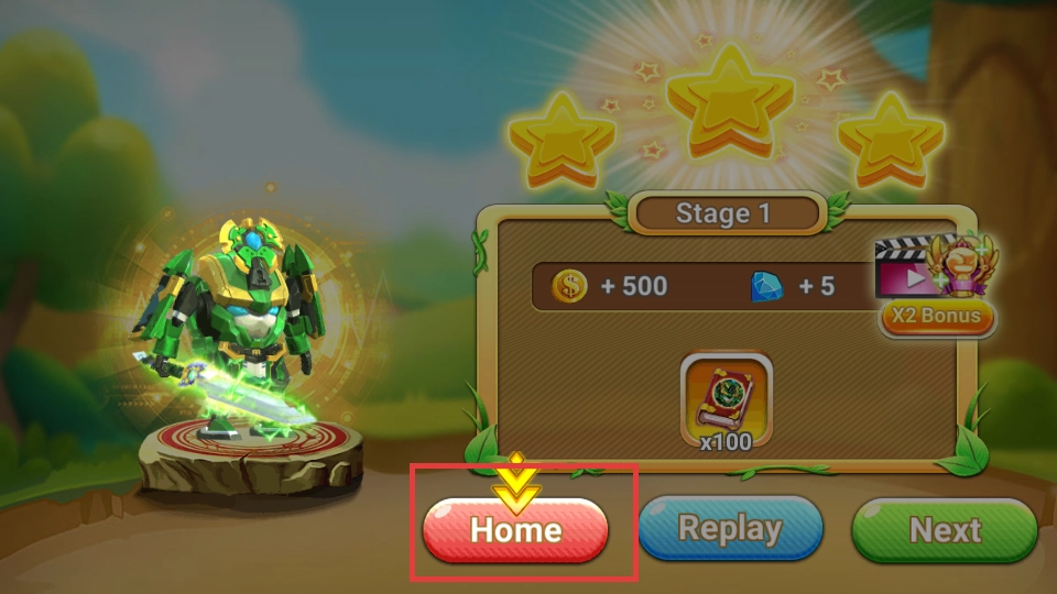 4、完成【Stage1】关卡通关后,点击【Home】,即可回到主界面。